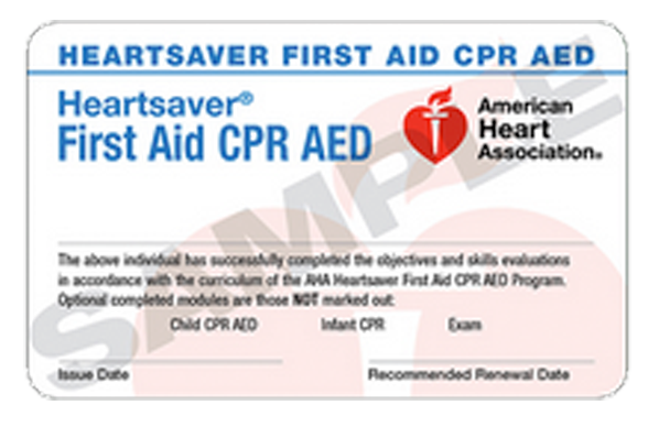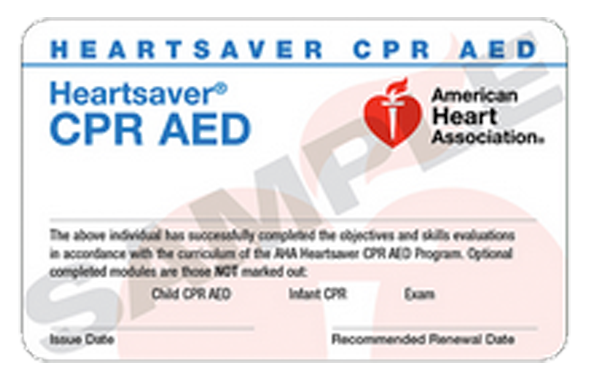 The AHA Heartsaver CPR AED Course is designed for anyone with limited or no medical training who needs a course completion card in CPR and AED use to meet job, regulatory, or other requirements.